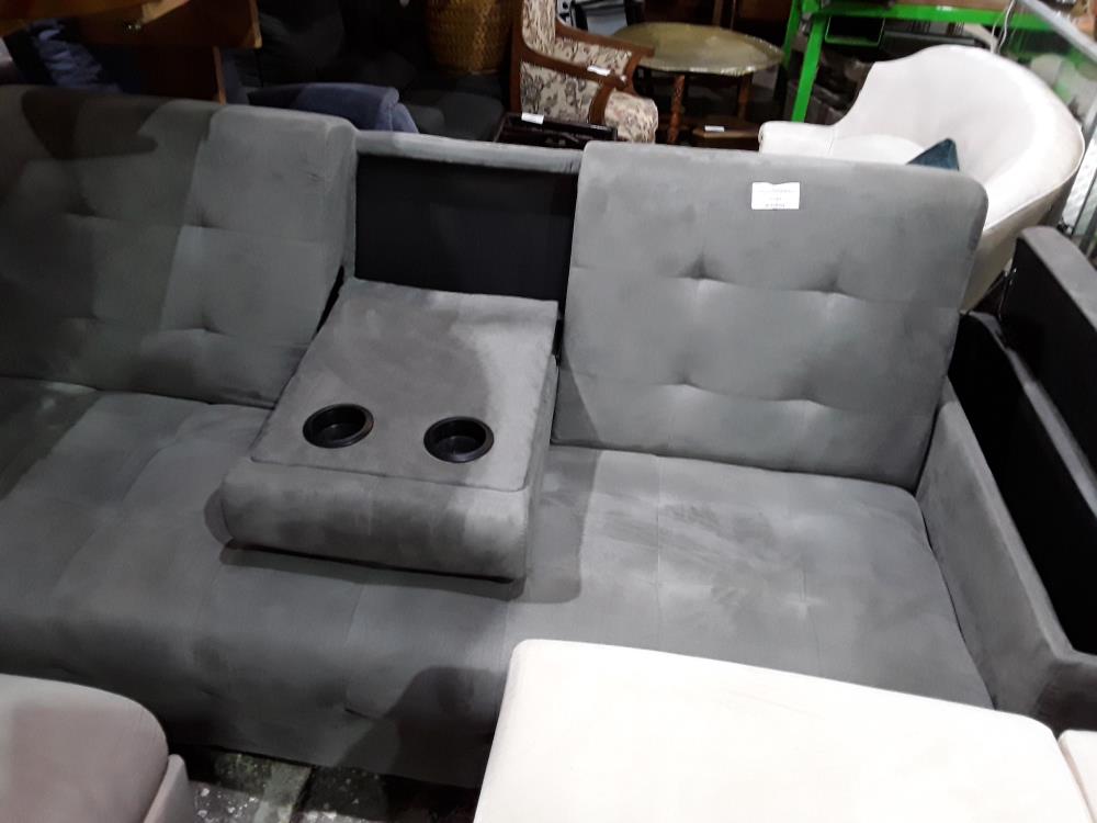 CANAPE CLIC CLAC FACON NUBUC GRIS COFFRES DANS ACCOUDOIRS DOSSIER BASCULANT PORTE VERRES
