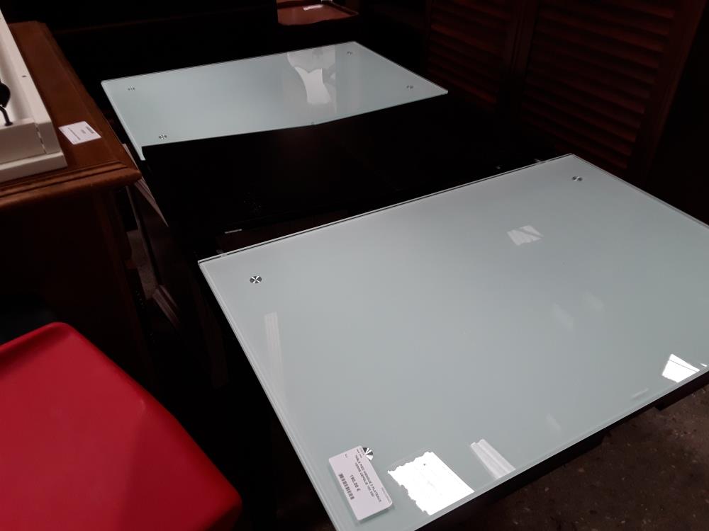 TABLE PIED WENGUE 2 PLATEAUX VERRE DEPOLIE 100 X80 RALLONGEABLE A 180CM